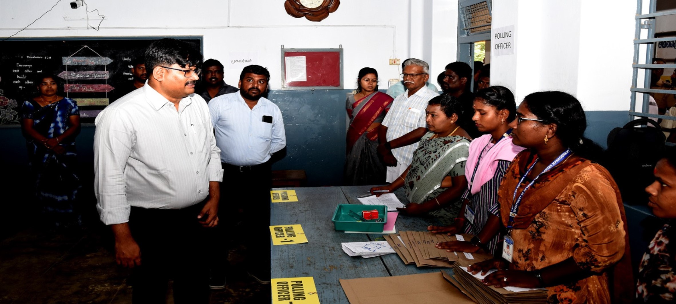 திருவாரூர்: மாவட்டம், மன்னார்குடி St.ஜோஸப் பெண்கள் மேல்நிலைப்பள்ளியில் வாக்குப்பதிவு நாளன்று வாக்குச்சாவடி மையங்களில் பணிபுரியவுள்ள அரசு அலுவலர்கள் அஞ்சல் வாக்கு செலுத்துவதனை திருவாரூர் மாவட்ட தேர்தல் அலுவலர் மற்றும் மாவட்ட ஆட்சித்தலைவர் திரு.வ.மோகனச்சந்திரன், இ.ஆ.ப., அவர்கள், கூடுதல் ஆட்சியர் (வளர்ச்சி) / திட்ட இயக்குநர் செல்வி.பல்லவி வர்மா, இ.ஆ.ப., அவர்கள் ஆகியோர் பார்வையிட்டனர்.
